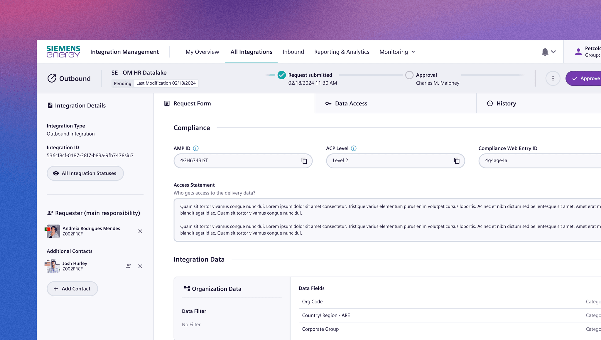 Integration Data Request