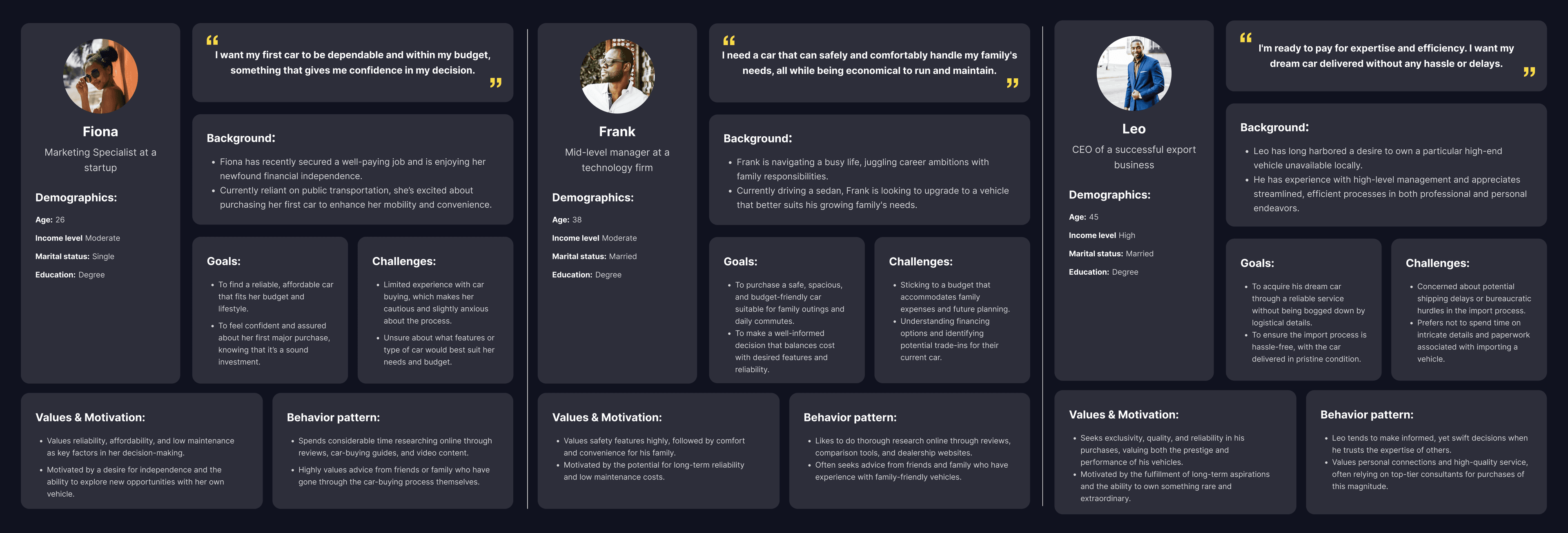 I had both in person and online conversations with the team to clearly define the business pain points and the customer profiles and journey. This also gave me an opportunity to learn about the car dealership, the current challenges and how the company saw the vision of the industry.