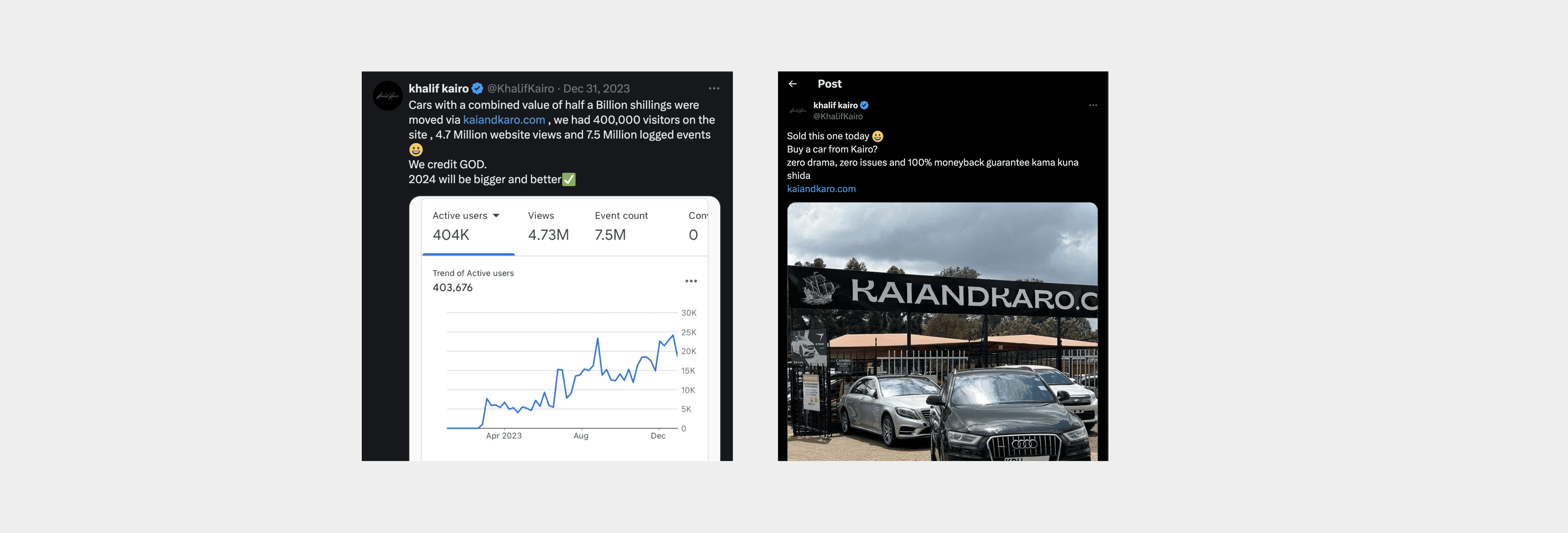 Kai & Karo was officially launched in January 2023, and went on to become the leading car dealership platform in Kenya.