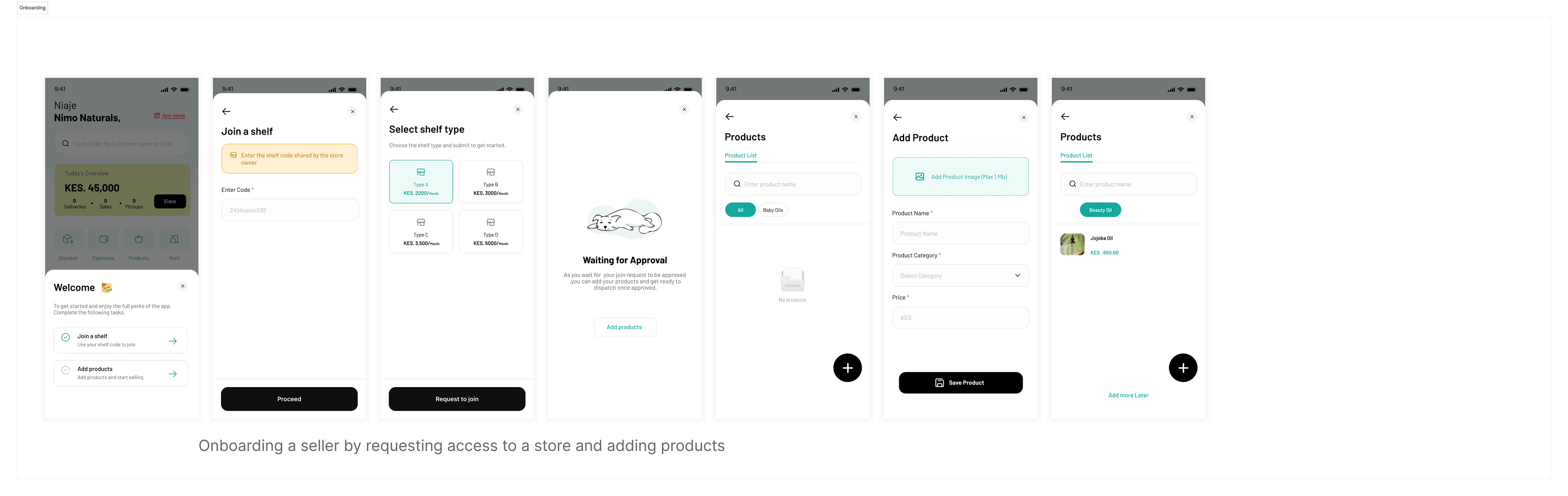 1. Seller Onboarding - After registration, seller joins a store and add products .